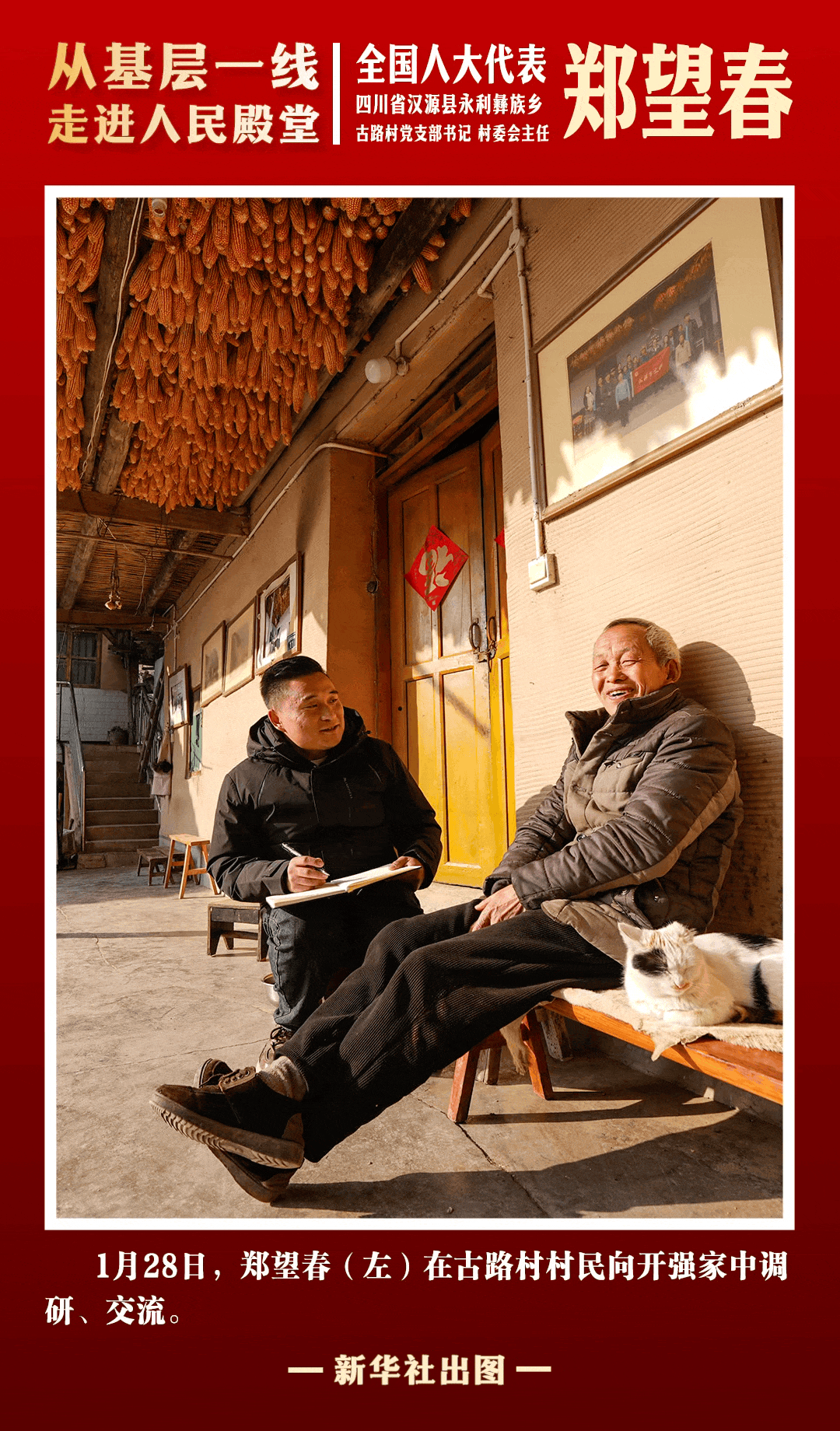 郑望春扎根基层十余年,带领古路村村民探索出一条农文旅融合发展的新路径。近两年,古路村绝壁骡马道的相关短视频在社交媒体上走红,游客量激增。郑望春带头整合村庄资源,因地制宜发展“农文旅融合”模式。他用实际行动践行着代表职责,为基层群众发声。2026年两会,他聚焦乡村振兴多方面提出建议,助力彝乡发展。